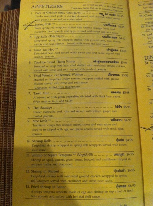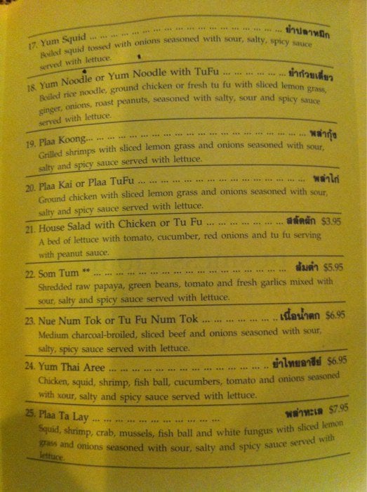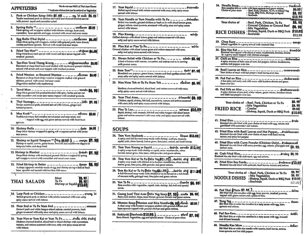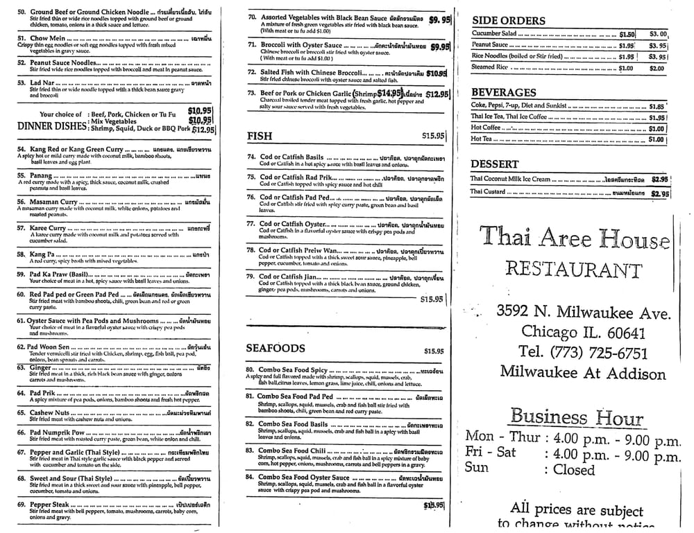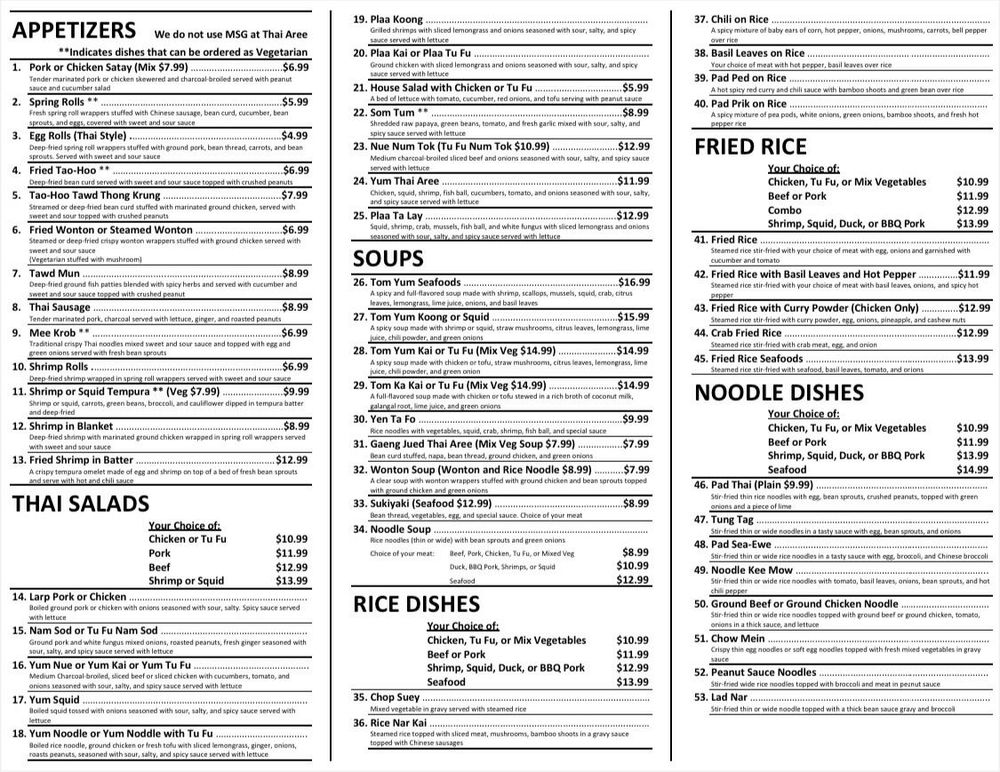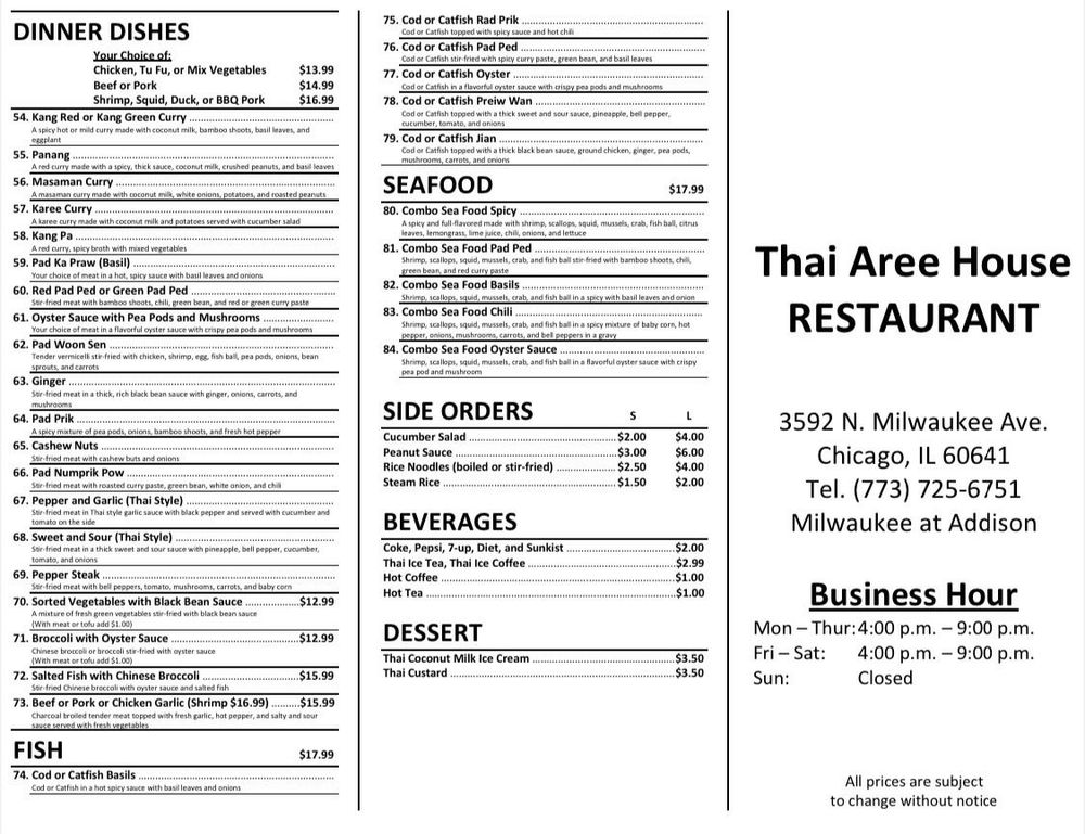 Thai Aree House Menu (Update 2025)