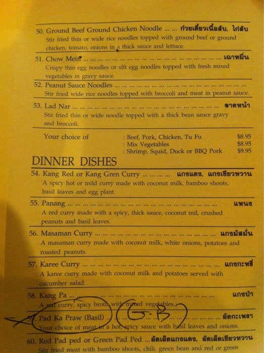 Your choice of meat with hot pepper, basil leaves over rice.
