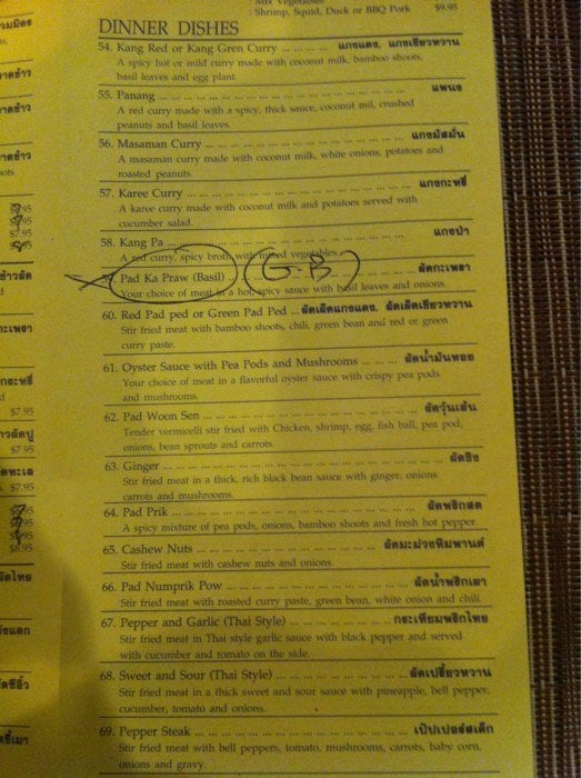 Your choice of meat in a hot, spicy sauce with basil leaves and onions.
